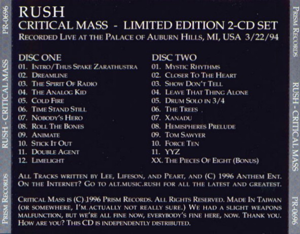rush - palace of auburn hills, michigan, usa - 22 march 1994.